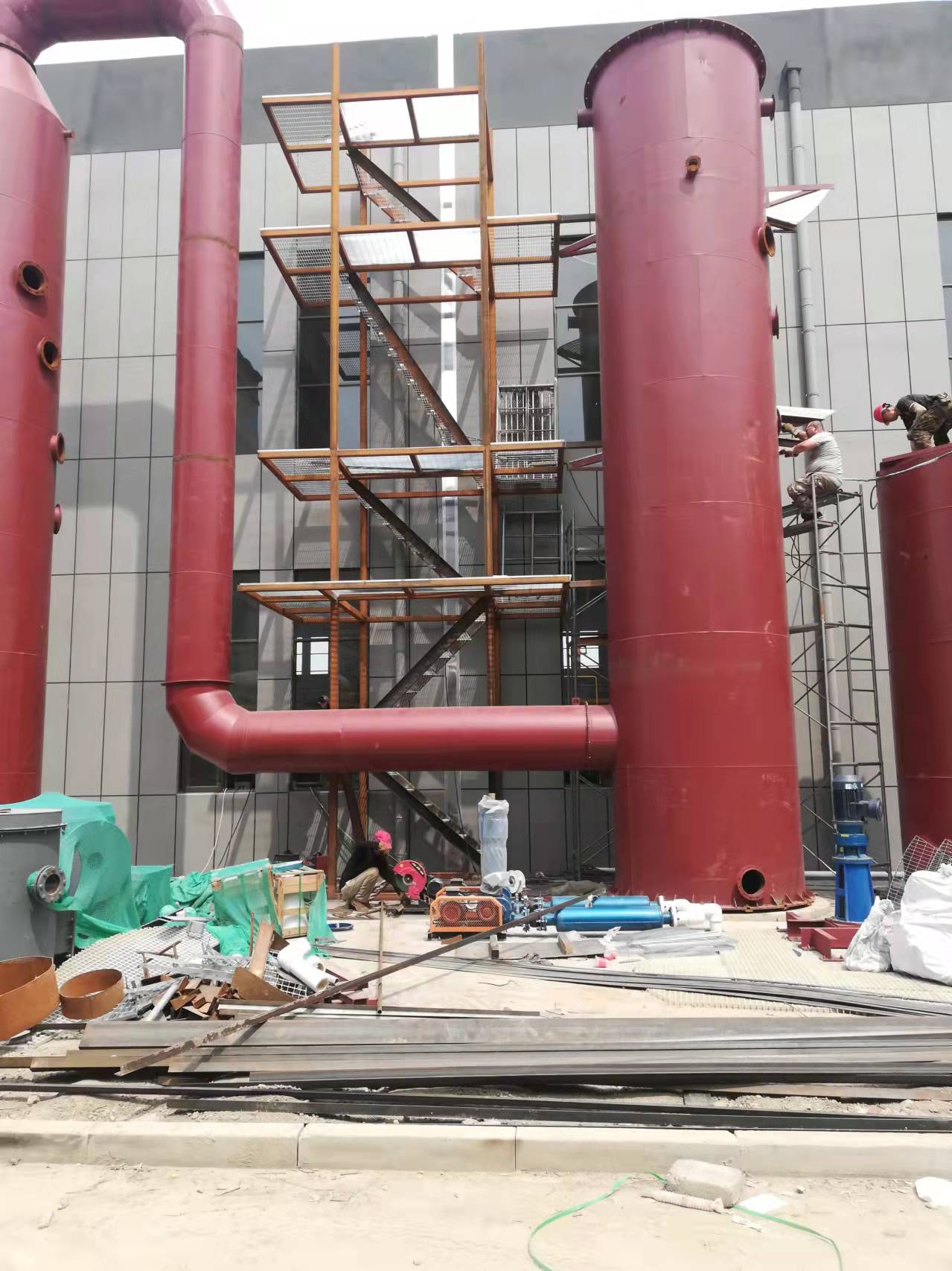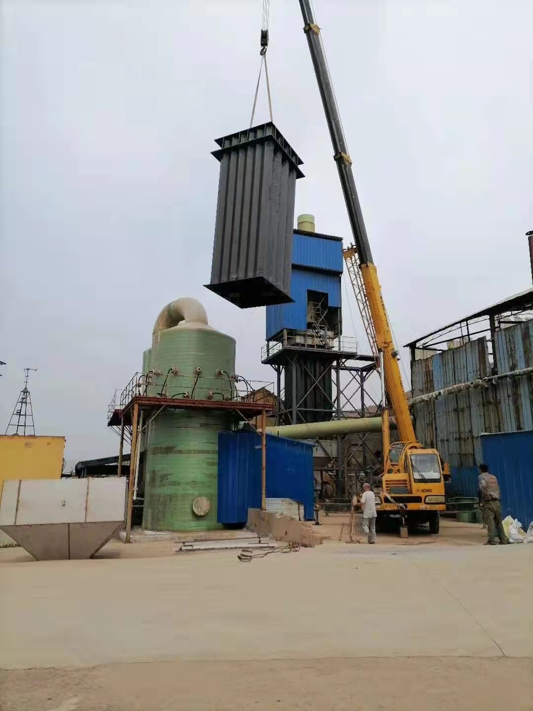 里,含塵廢氣與水霧充分混合洗滌、中和反應(yīng)(水里面補(bǔ)充酸堿時)